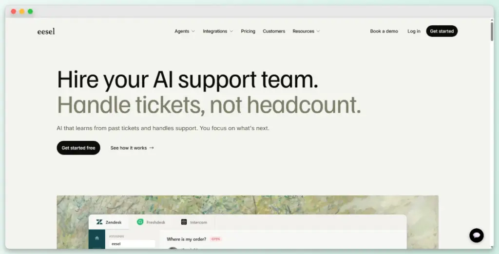 eesel AI doesn’t replace your helpdesk. Instead, it adds an AI layer on top of tools you already use, such as Zendesk, Intercom, Freshdesk, or HubSpot. It trains on your existing docs and past tickets to draft replies or resolve tickets on its own.