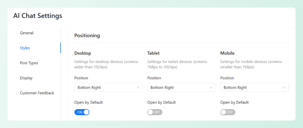 StoreAgent Chat gives you full control over these settings. You decide whether it’s open by default or hidden until needed. You choose where it appears on each device. And when shoppers do type a question, it provides instant answers pulled directly from your WooCommerce data.
