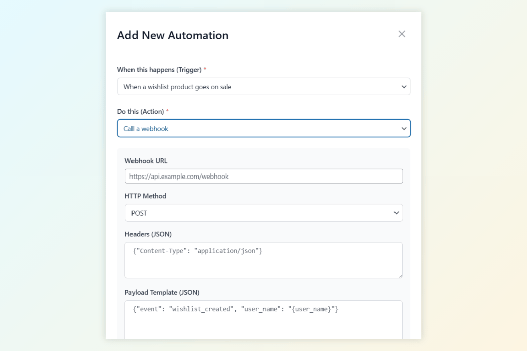 Use webhooks to seamlessly bridge your wishlist data with external marketing tools and CRMs