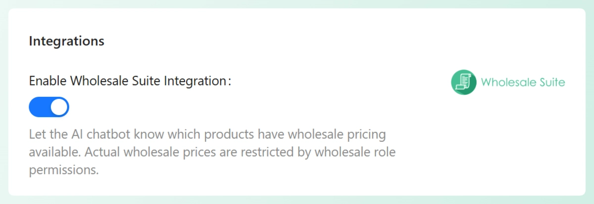 No. It doesn’t replace or modify your pricing rules. It helps StoreAgent follow the same rules you already set in Wholesale Suite, which makes the AI’s responses more accurate for each user type.